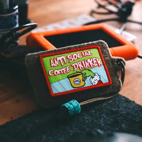 "Unleash your boldness with our Ant-Social Coffee Drinker Woven Patch! Get ready to conquer the holiday season with this 2"x3" patch featuring a hook backing and additional loop for easy application. Complete your collection with this last piece in the series and stand out from the crowd!"